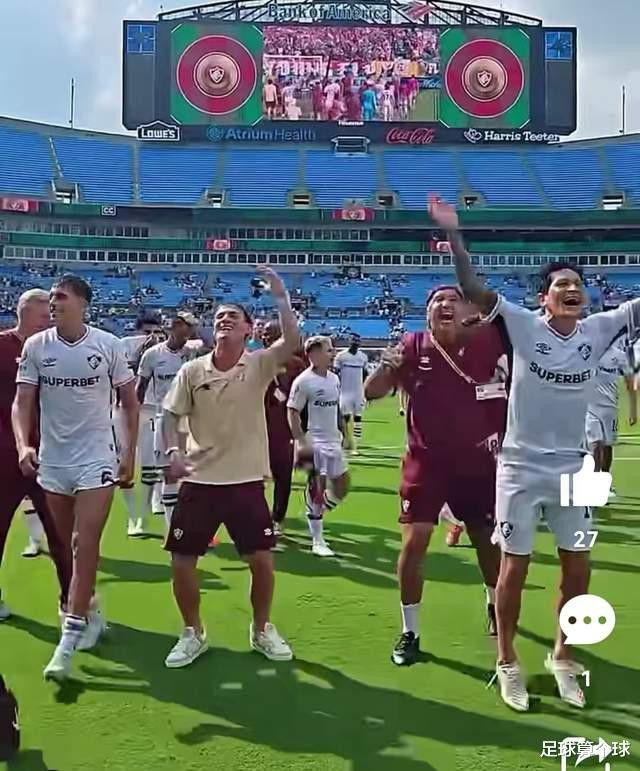 一场2-0令巴甲劲旅弗鲁米嫩塞队嗨翻了天,比赛还未结束,替补席上已经是欢腾一片。比赛结束之后,球员们在球场上又蹦又跳如同夺冠,尽情释放着内心的激动之情。毕竟这是一场梦幻般的2-0,他们击败的可是欧洲亚军,在赛前谁也想不到他们会以净胜2球的方式击败国米。